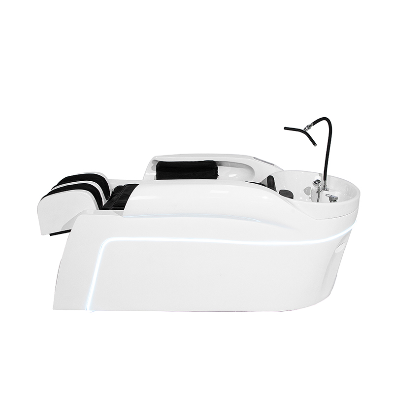 La iluminación ambiental alrededor de la unidad crea una atmósfera de spa relajante.